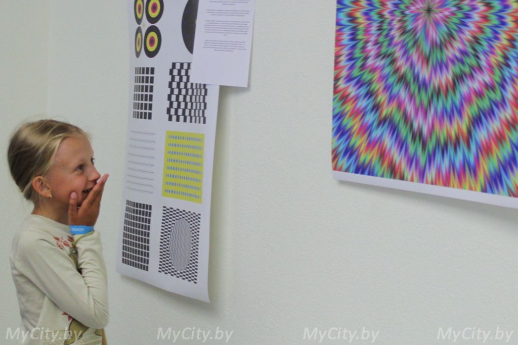 Посетителей необычной выставки сопровождают плакаты с различными визуальными иллюзиями. В общей сложности гостям представлено около 40 экспонатов и почти на все из них можно не только посмотреть, но и потрогать руками.